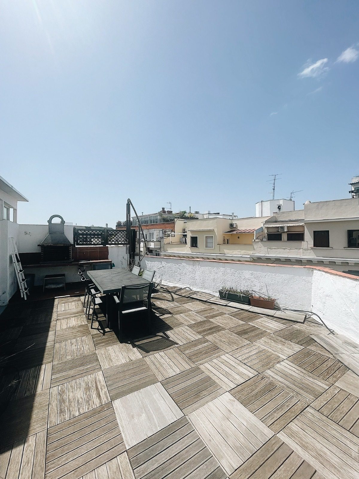 Este singular dúplex construido en 1945 cuenta con una superficie construida de 185m2 divididos en dos plantas, de los que 45m2 son de terraza y 8m2 de balcones. La propiedad se vende con 1 plazas de garaje.