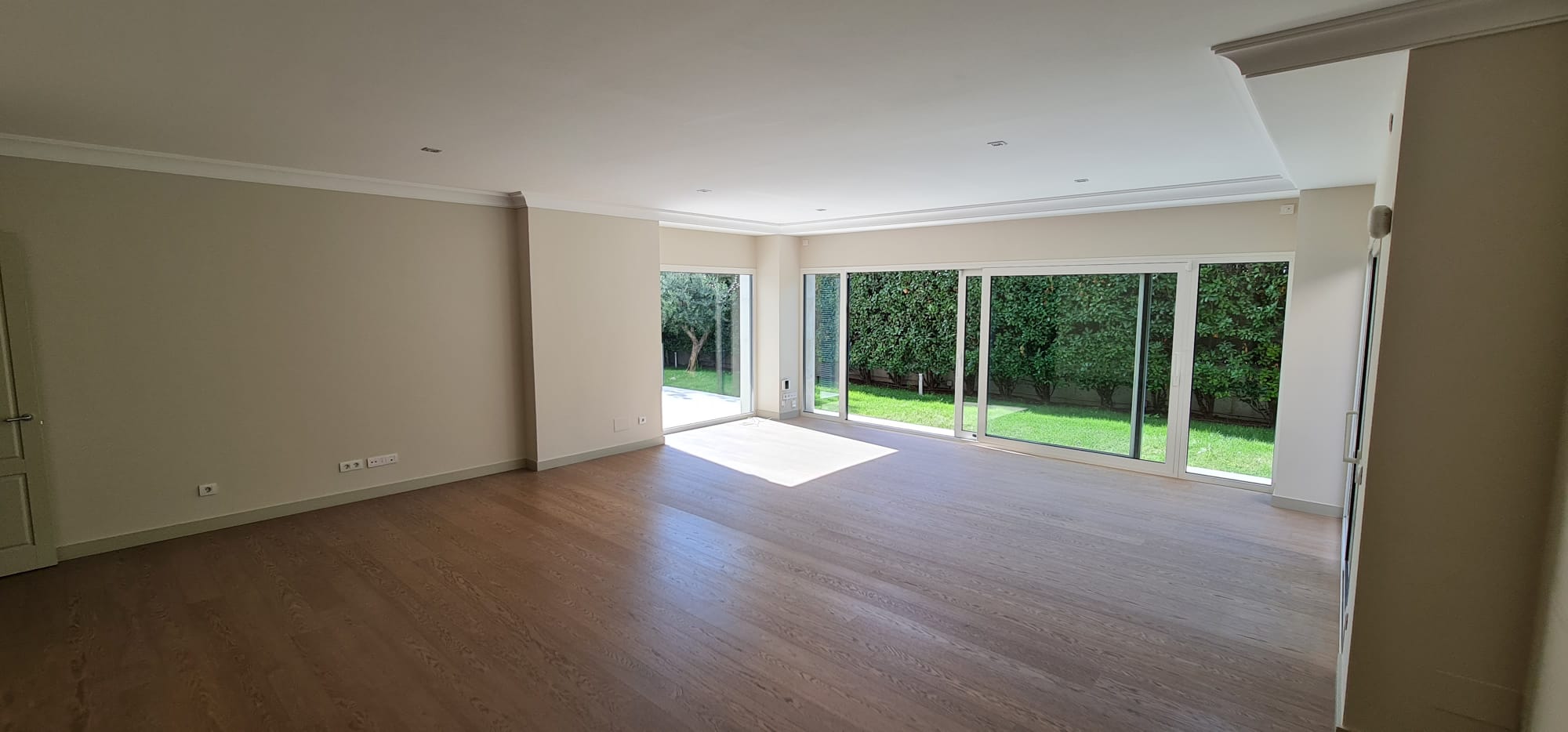 La vivienda se distribuye de la siguiente forma: Amplio vestíbulo con armario gabanero y aseo de cortesía. Salón comedor de 50m2 con un gran ventanal al jardín. Cocina completa amueblada con una habitación de servicio y cuarto de baño independiente. La habitación principal con cuarto de baño en suite y otras dos con un cuarto de baño a compartir. Cuarto de estar al lado de la cocina con acceso a jardin. Dos plaza de garaje. Trastero.