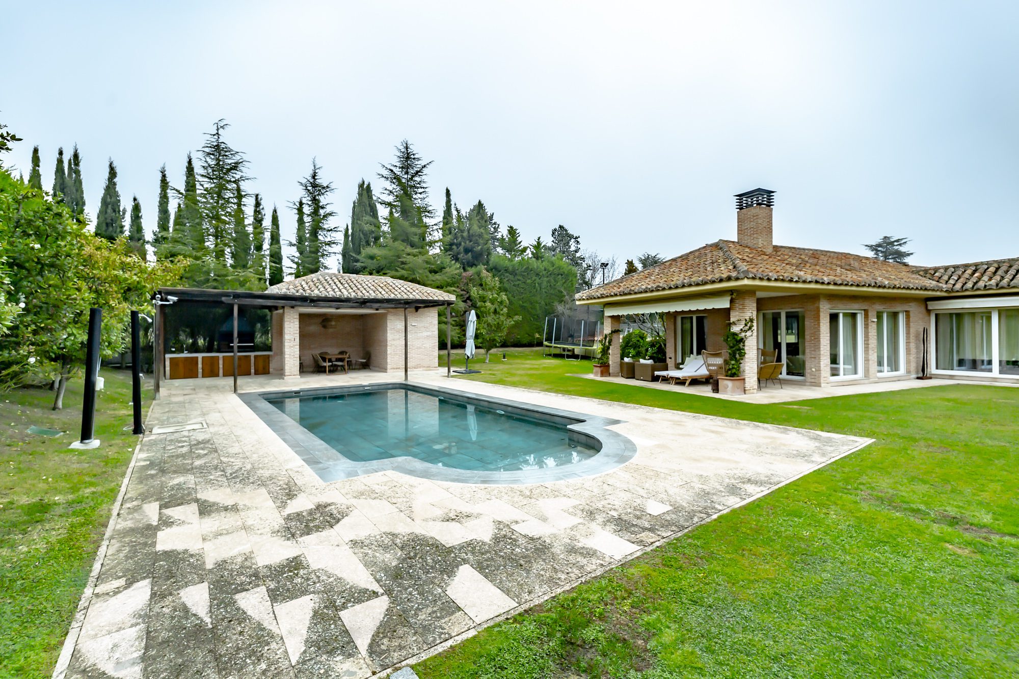 Su amplia parcela la ocupa la piscina de verano con zona de barbacoa, pista de pádel y zona de gimnasio, junto al que encontramos la piscina climatizada y la sala de fiestas.