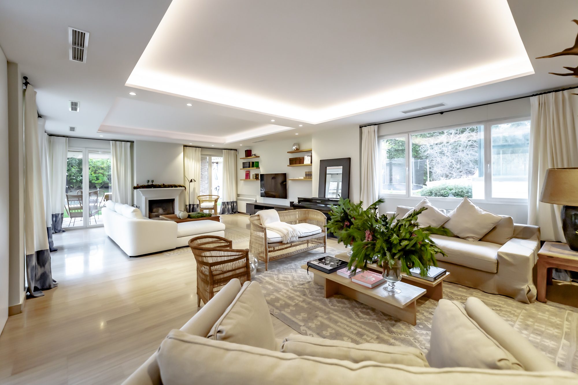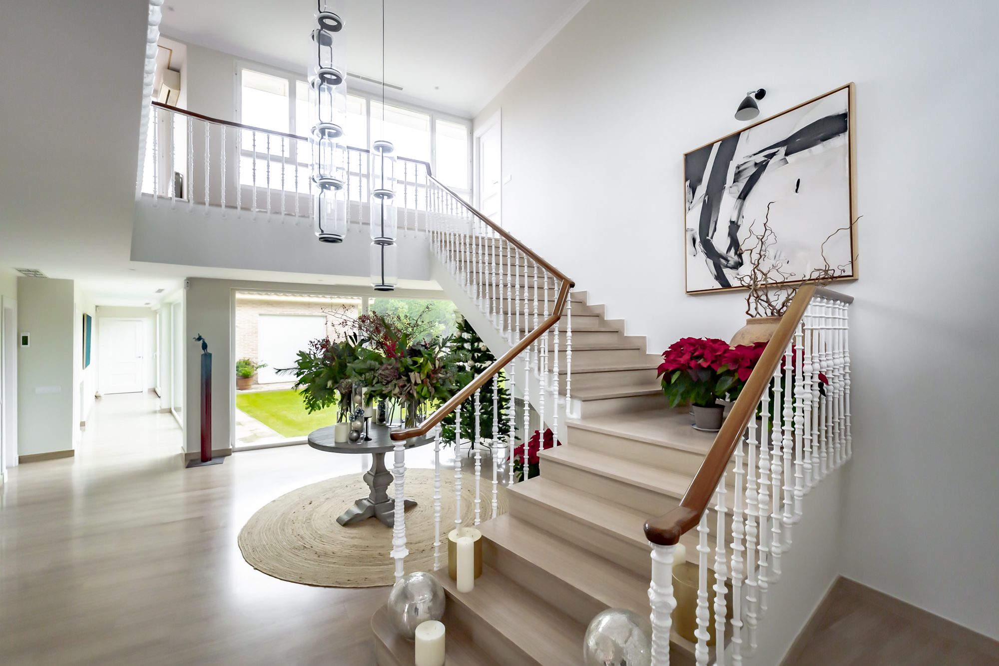 Hall de entrada con majestuosas escaleras, amplia cocina (conectada con zona de servicio, zona de lavandería y acceso al parking) luminoso comedor, salón con chimenea en varios ambientes, despacho, aseo de cortesía y 4 habitaciones, incluida la principal, todas con vestidor y baño en suite.