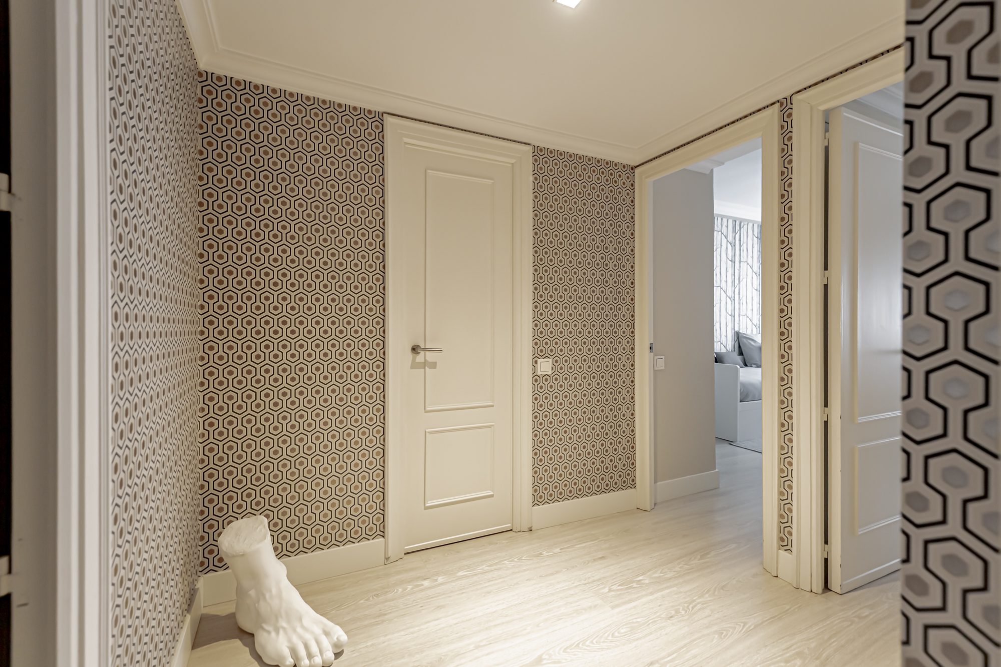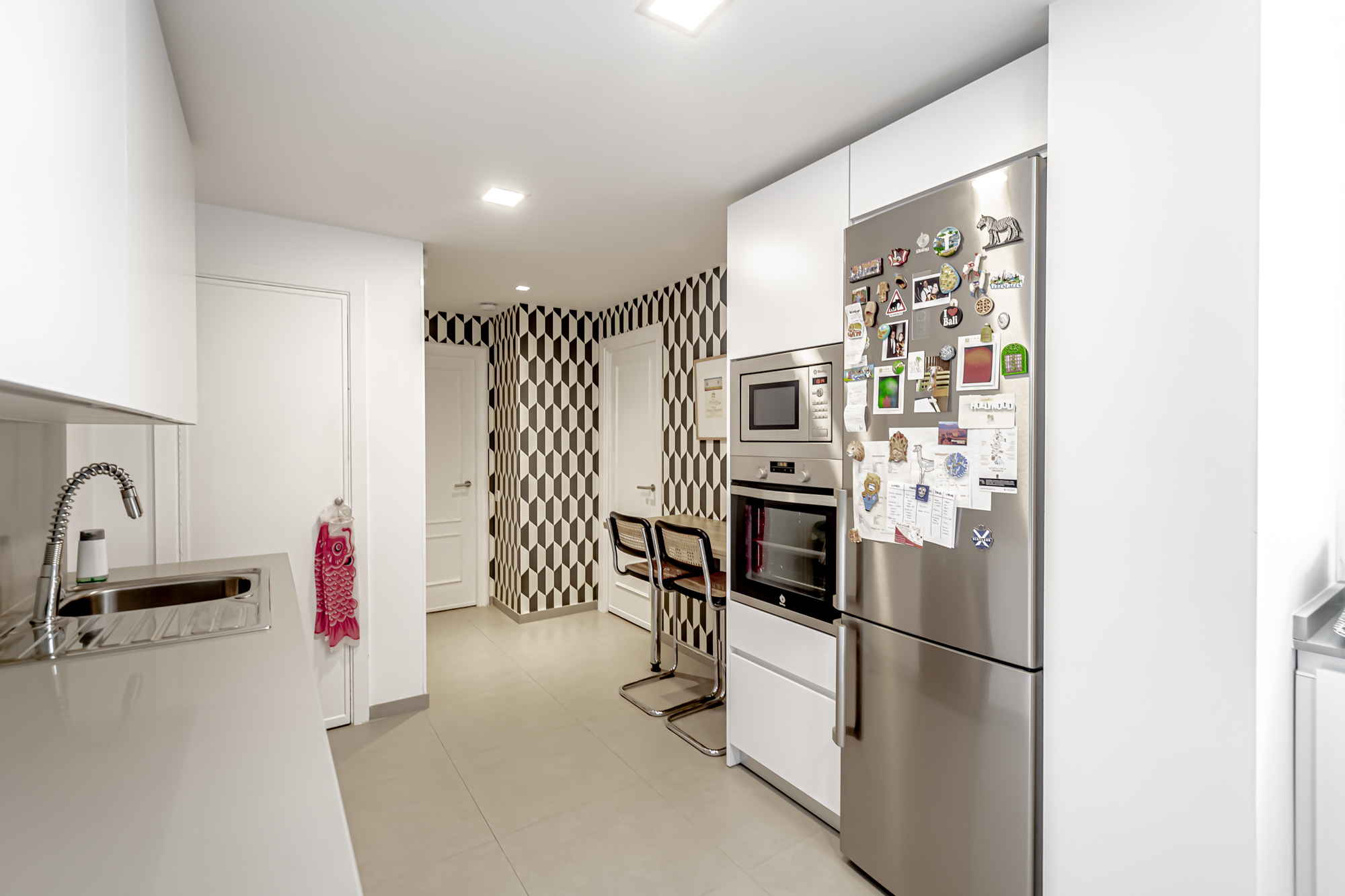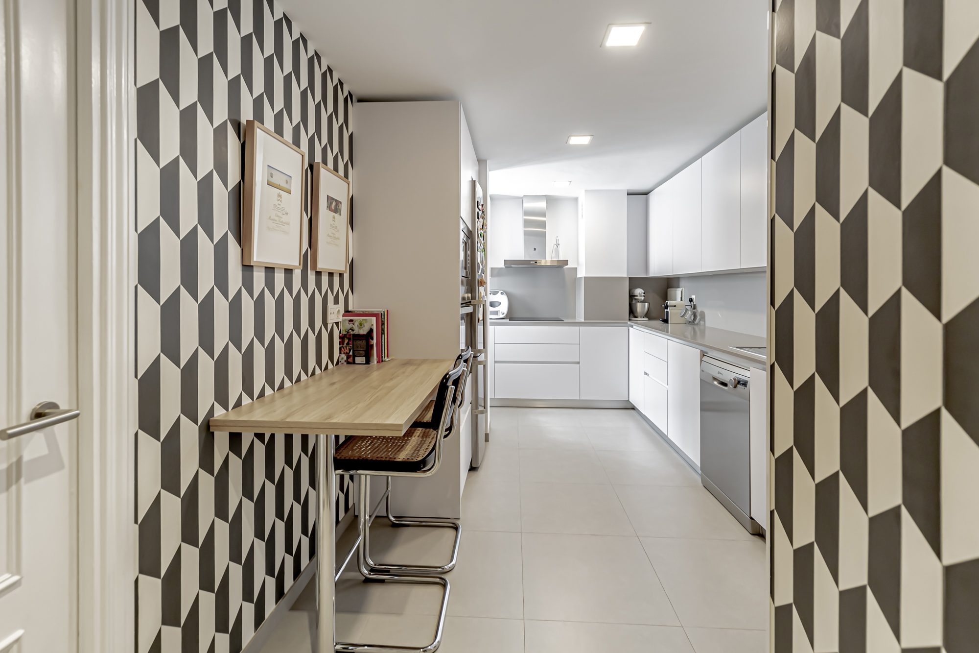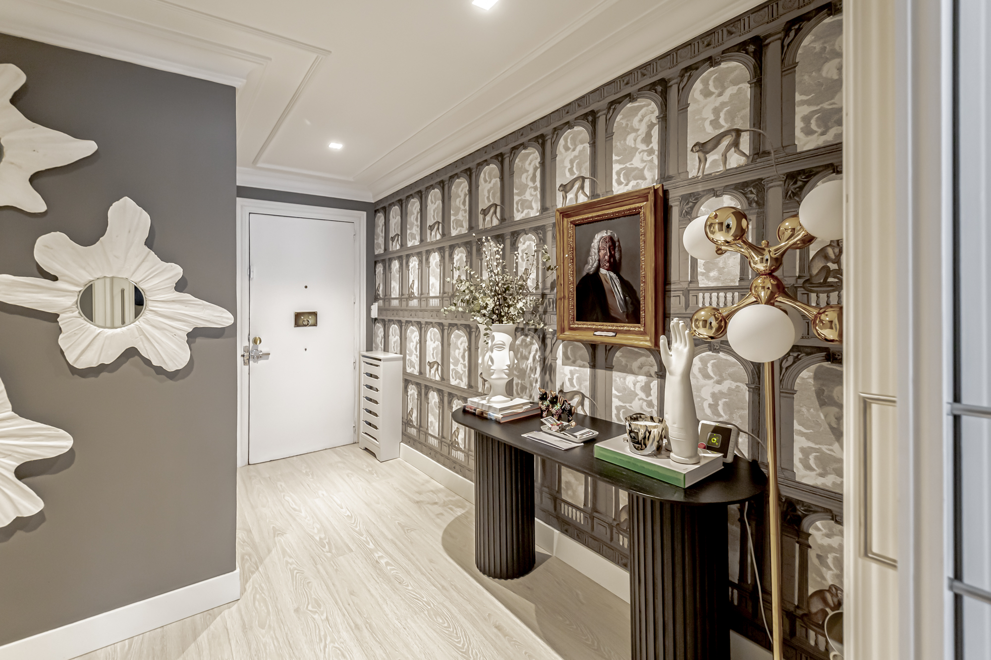La propiedad, situada en una quinta planta, sorprende por su decoración, papeles pintados, muebles de diseño y una excelente distribución: