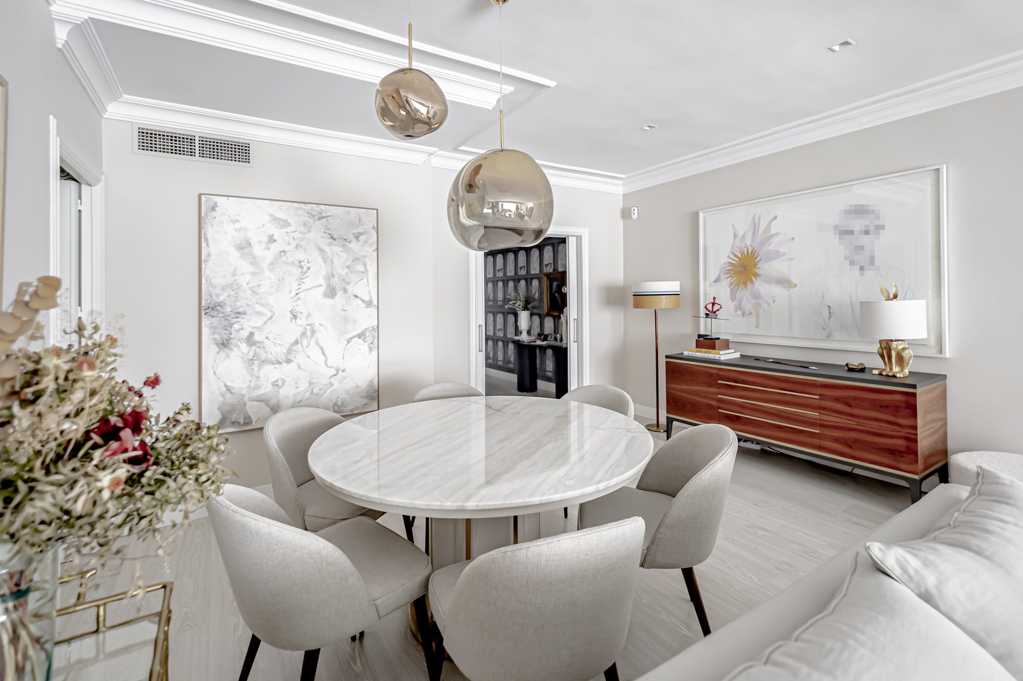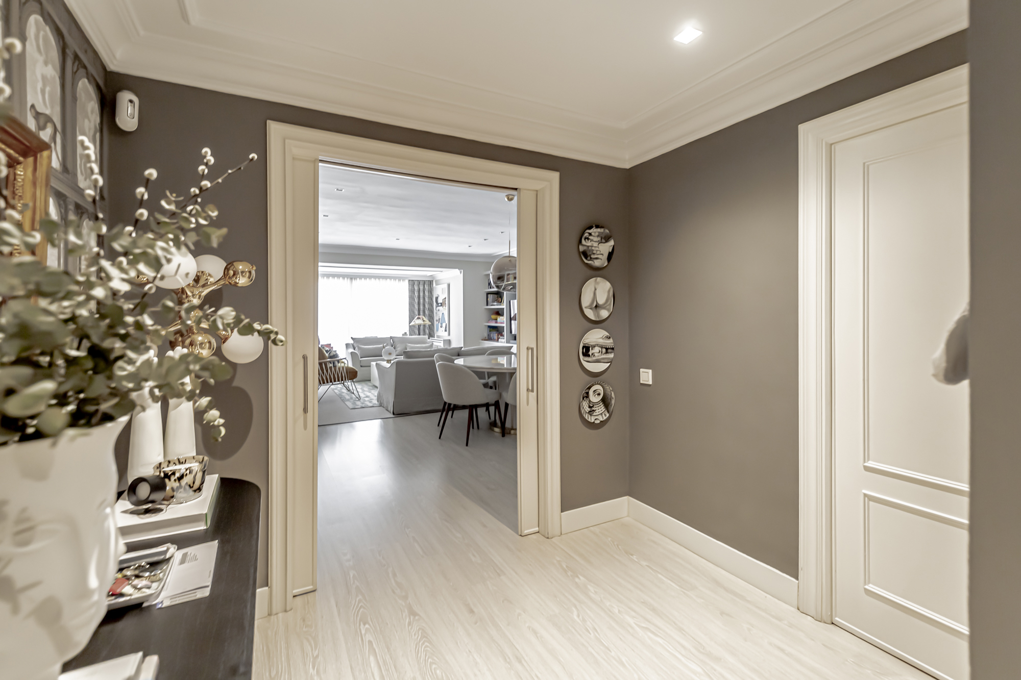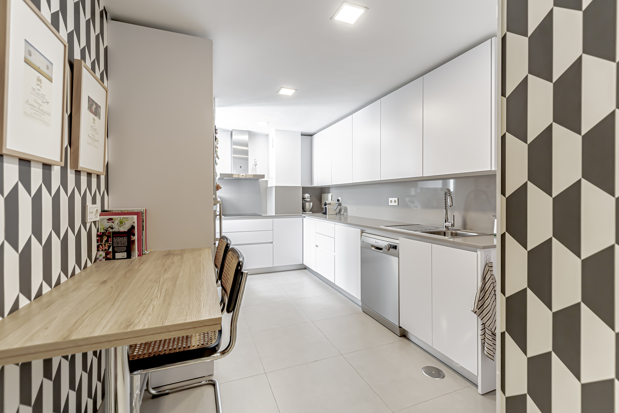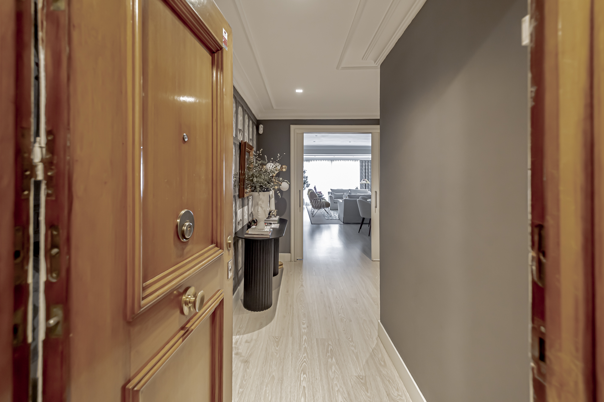 La propiedad, situada en una quinta planta, sorprende por su decoración, papeles pintados, muebles de diseño y una excelente distribución: