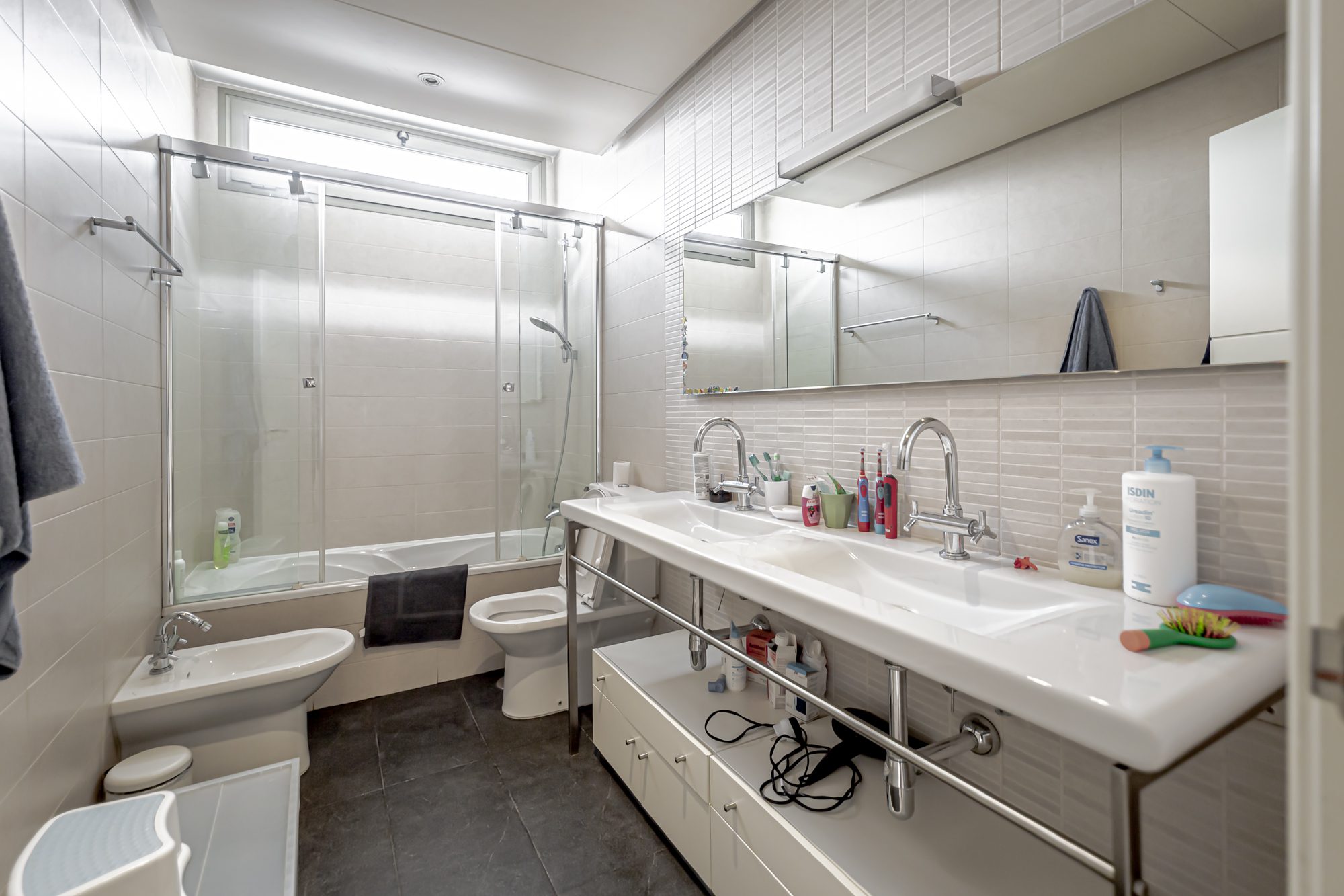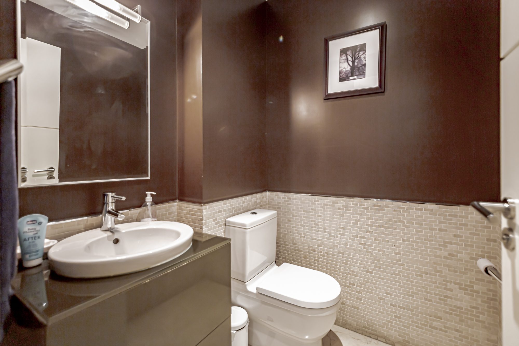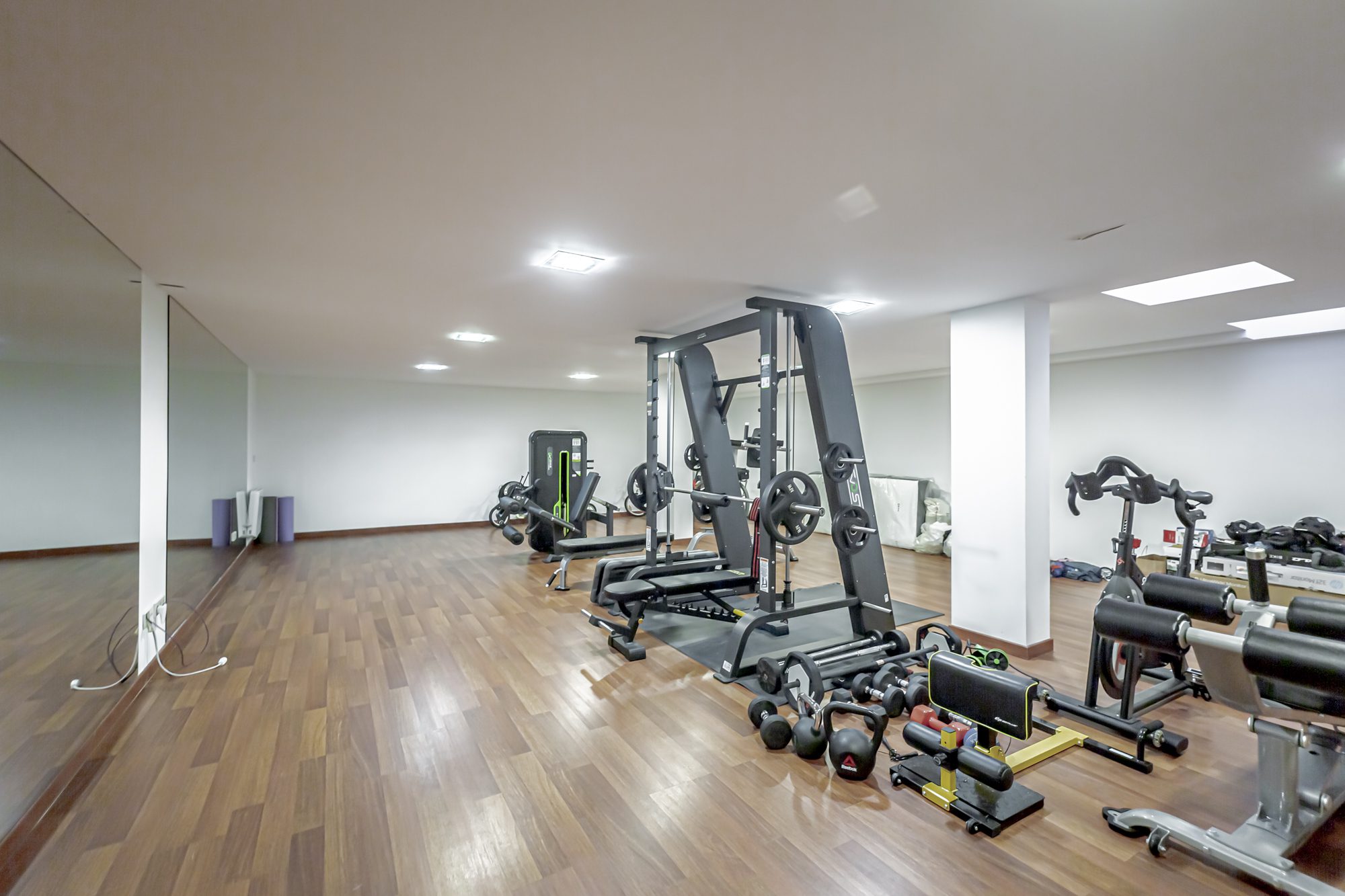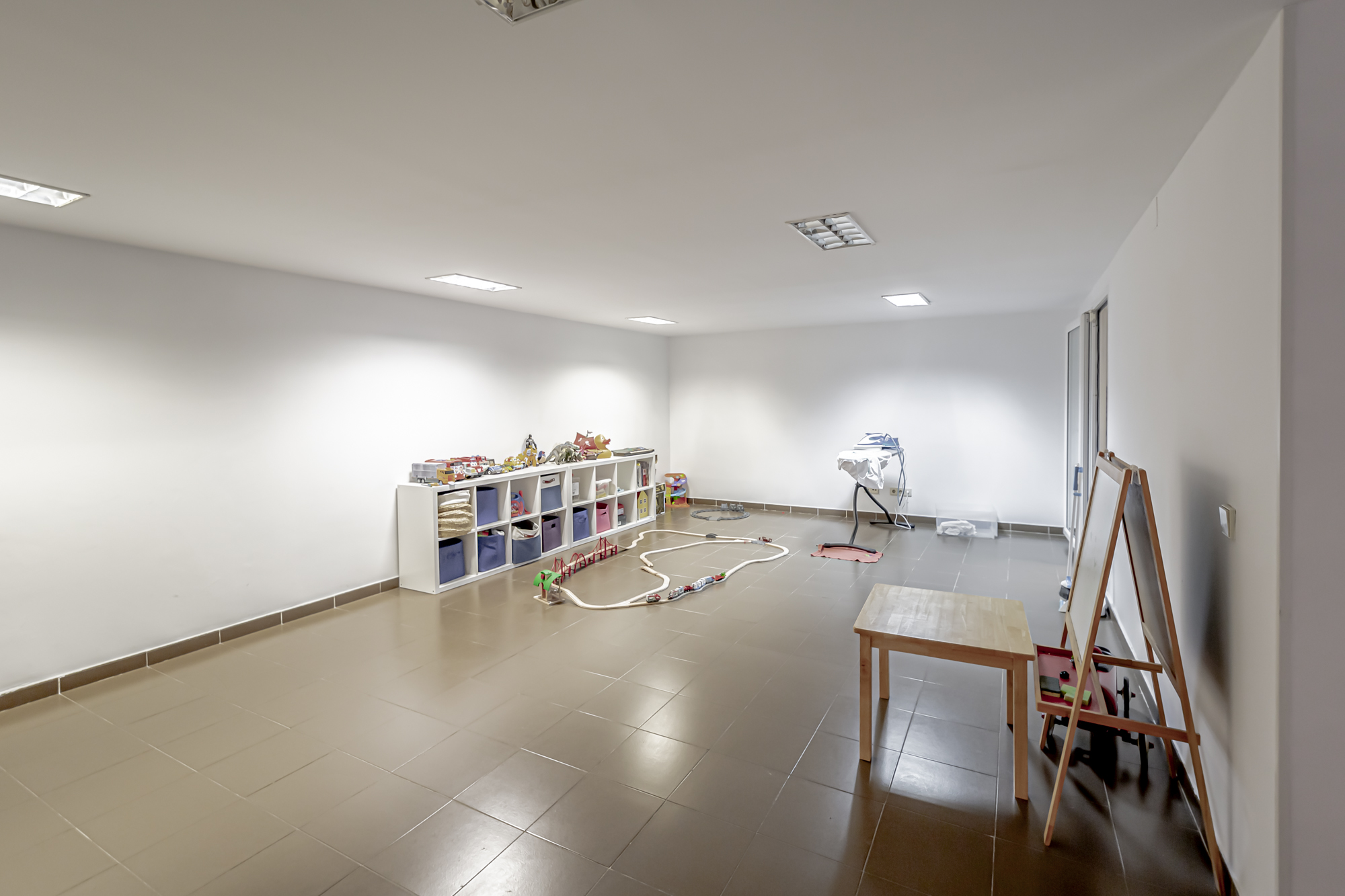 La planta inferior cuenta con un dormitorio de servicio con baño privado, un patio inglés que ilumina naturalmente toda la planta, una sala multiusos tipo «playing room» y un cuarto de máquinas de calderas.